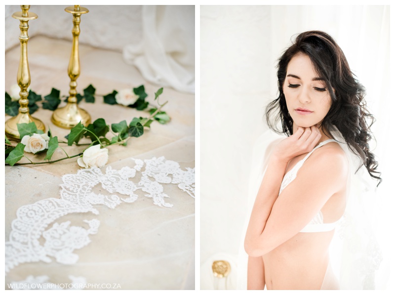 This gorgeous set of images celebrates one of the most exciting moment in a woman’s life, and with simple lace lingerie, natural hair and makeup, and her delicate veil, it couldn’t be more perfect.